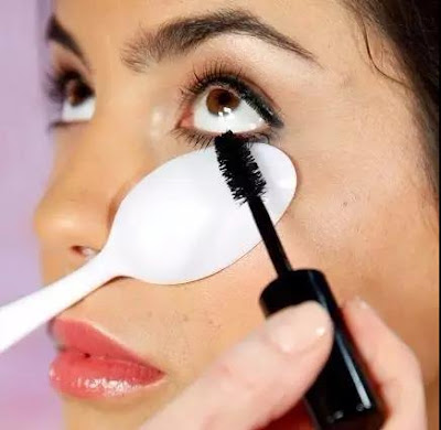 ๐1. Applying mascara to the eyelashes is a technical job, because if one is not careful, it will be applied to the face. But babies just put a spoon under the eyes and hold the eyelashes, and they can apply it with confidence! You can use the plastic disposable spoon.